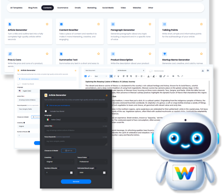 The perfect tool to start writing great articles. Generate creative ideas for your next post